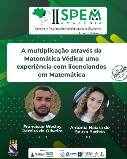 Os integrantes do Grupo de Pesquisa em Educação e História da Matemática (GPEHM), vinculado à Universidade Estadual do Ceará (UECE), tiveram trabalhos aprovados e serão apresentados no II Seminário de Pesquisa em Educação Matemática na/da Amazônia (SPEM–Amazônia), que acontecerá entre os dias 19 e 22 de novembro de 2025, na Universidade Federal do Tocantins (UFT) – Câmpus Arraias, em formato híbrido.