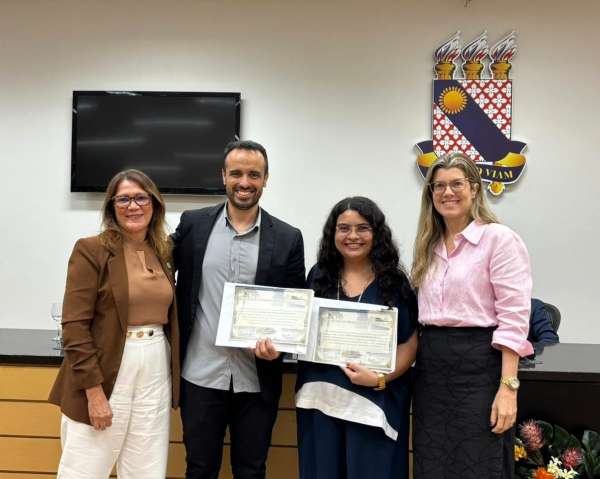 Em um momento de grande simbolismo, a Profa. Verusca foi a escolhida para receber o certificado de reconhecimento em nome de todo o corpo discente, representando o protagonismo e a dedicação dos estudantes que constroem a excelência do Programa de Pós-Graduação em Educação (PPGE/UECE), que atingiu a nota 6 na última avaliação.