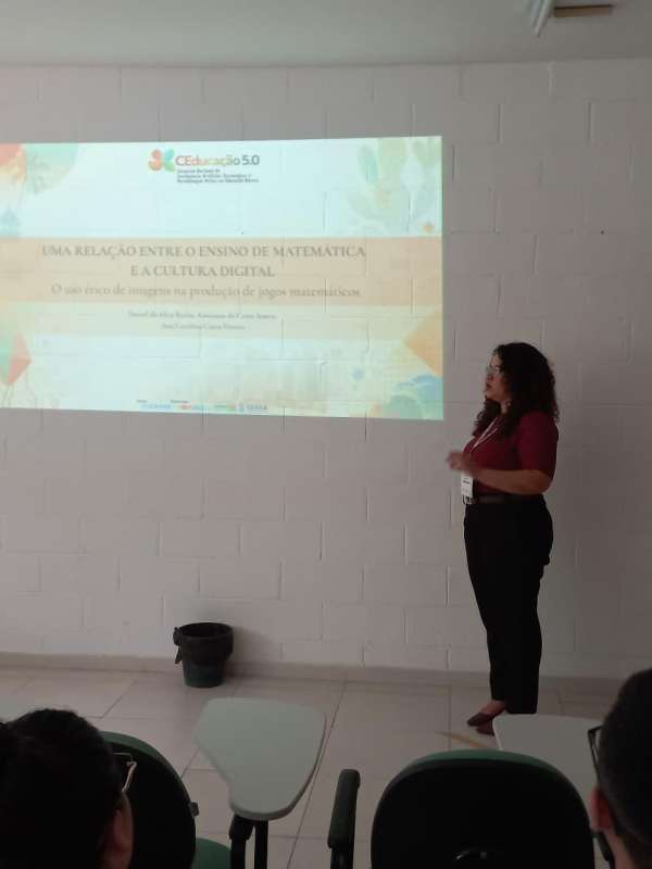 Representando o GPEHM, Kawoana apresentou trabalhos acadêmicos desenvolvidos em parceria com o Grupo de Pesquisa e Produção Colaborativa de Mídias Digitais e Aprendizagem da Matemática (PROMÍDIA), abordando temáticas contemporâneas que articulam educação matemática, cultura digital e inteligência artificial: