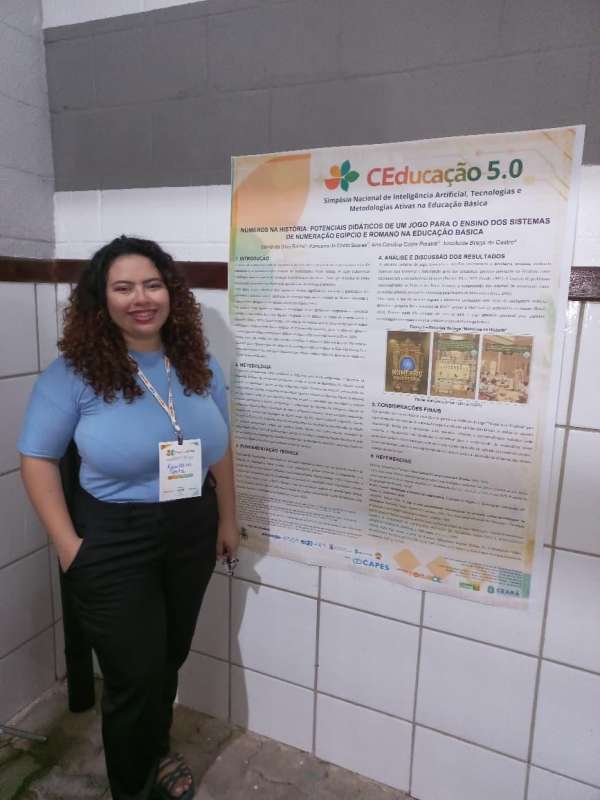 O Grupo de Pesquisa em Educação e História da Matemática (GPEHM) celebra a participação de sua integrante, mestranda do Programa de Pós-Graduação em Educação da UECE (PPGE/UECE), Kawoana da Costa Soares, no CEducação 5.0: Simpósio Nacional de Inteligência Artificial, Tecnologias e Metodologias Ativas na Educação Básica, realizado nos dias 07, 08 e 09 de abril de 2026, no Centro de Formação e Desenvolvimento para os Profissionais da Educação do Estado do Ceará Profª Maria Neli Sobreira de Oliveira (FormaCE).