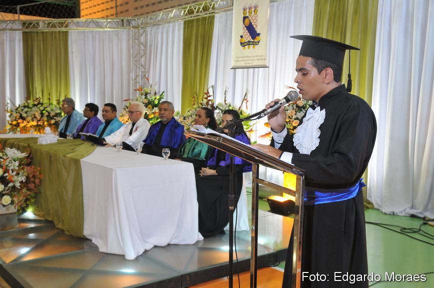 Quem leu o juramento para os 69 concludentes da FECLESC – sendo 05 do curso de Ciências Biológicas, 14 de História, 21 de Letras Português, 06 de Letras Inglês, 06 de Matemática, 06 de Pedagogia e 11 de Química – foi Maria Socorro Aguiar Gomes, da Licenciatura em Letras Inglês. O orador discente foi Francisco Gildo Lima Pereira, concludente do curso de Pedagogia. A professora do curso de Pedagogia, Keila Andrade Haiashida, foi a oradora docente, que para