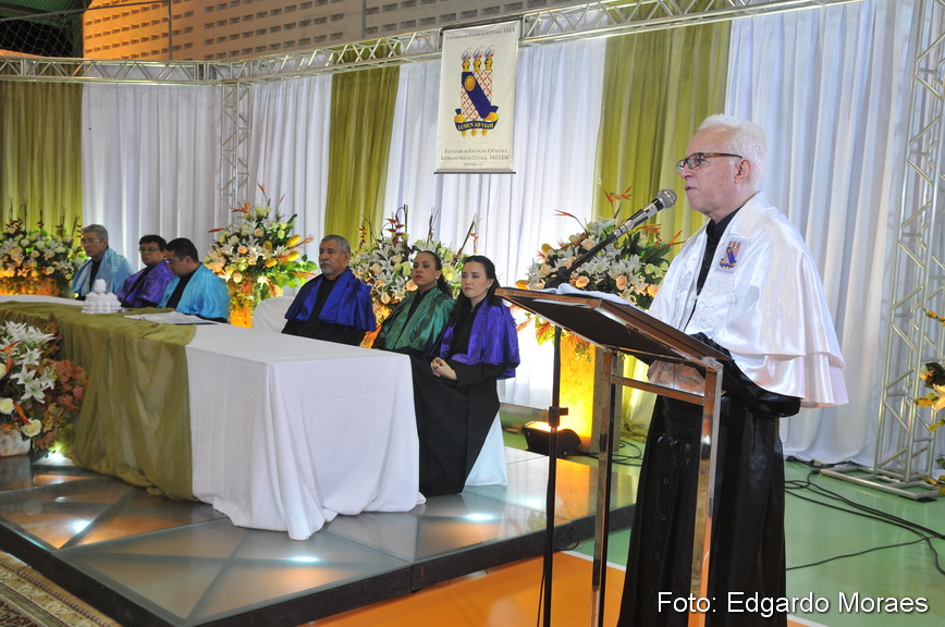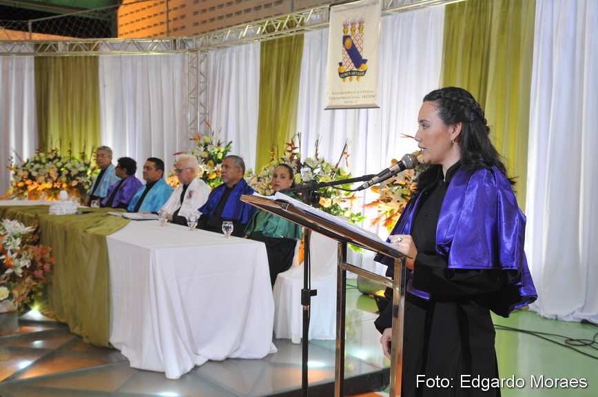 Quem leu o juramento para os 69 concludentes da FECLESC – sendo 05 do curso de Ciências Biológicas, 14 de História, 21 de Letras Português, 06 de Letras Inglês, 06 de Matemática, 06 de Pedagogia e 11 de Química – foi Maria Socorro Aguiar Gomes, da Licenciatura em Letras Inglês. O orador discente foi Francisco Gildo Lima Pereira, concludente do curso de Pedagogia. A professora do curso de Pedagogia, Keila Andrade Haiashida, foi a oradora docente, que para