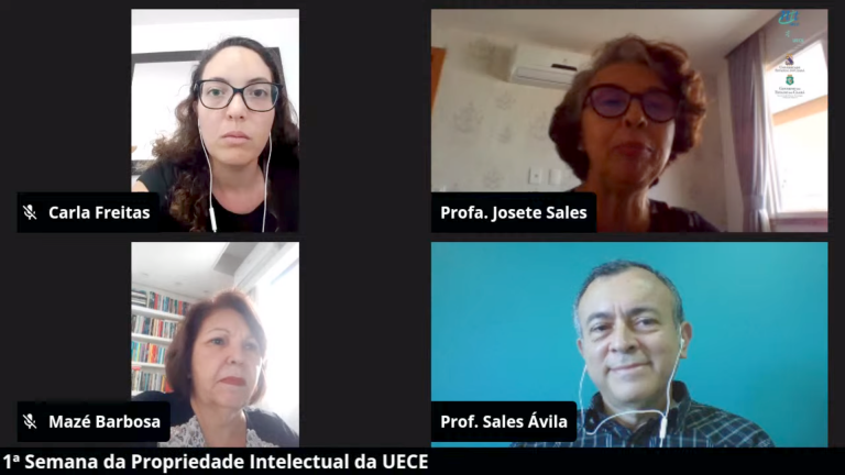Para abertura do evento virtual, estiveram presentes a reitora da Uece, professora Josete Castelo Branco; o coordenador do NIT, Sales Ávila; a coordenadora da IncubaUece, Mazé Barbosa; e a representante do Instituto Nacional da Propriedade Industrial (INPI), Carla Freitas.