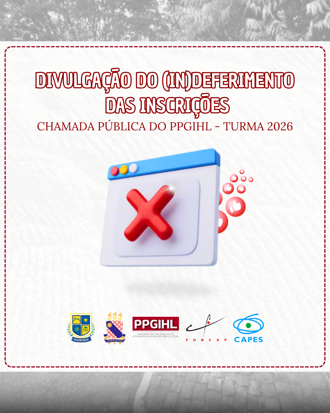 O Programa de Pós-Graduação Interdisciplinar em História e Letras disponibiliza o resultado do (in)deferimento da inscrições: