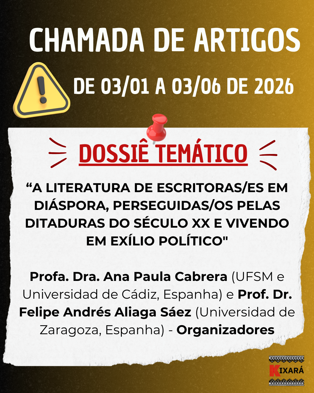 A KIXARÁ receberá, até 3 de junho de 2026, ARTIGOS que tratem do tema em tela — em português, inglês, espanhol, francês, galego e línguas indígenas —, que sigam as nossas normas de publicação. Este Dossiê é organizado pela Professora Doutora Ana Paula Cabrera @projetorepublicadasmulheres (Universidade Federal de Santa Maria / Universidad de Cádiz, Espanha – Cf. http://lattes.cnpq.br/2529639666556329) e pelo Professor Doutor Felipe Andrés Aliaga Sáez @felipe.aliaga.s (Universidad de Zaragoza, Espanha – Cf. https://imaginariosyrepresentaciones.com/miembros/felipe-andres-aliaga-saez/).