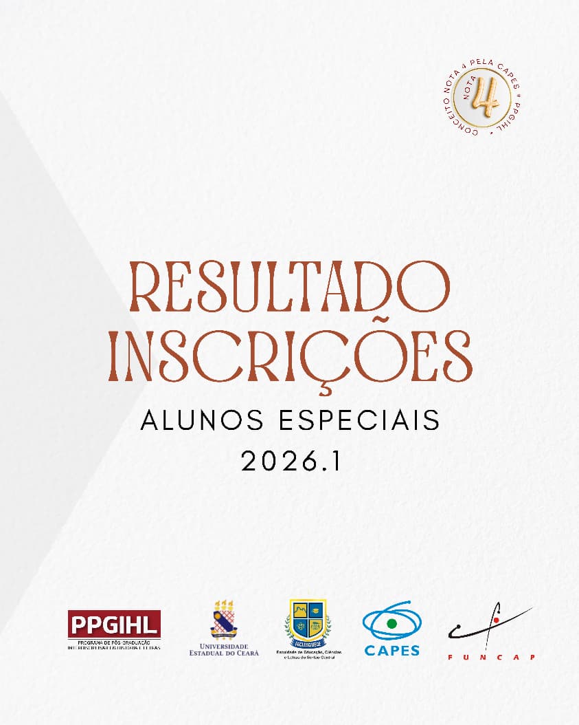 O Programa de Pós-Graduação Interdisciplinar em História e Letras divulga o resultado das inscrições para alunos(as) especiais – semestre 2026.1.