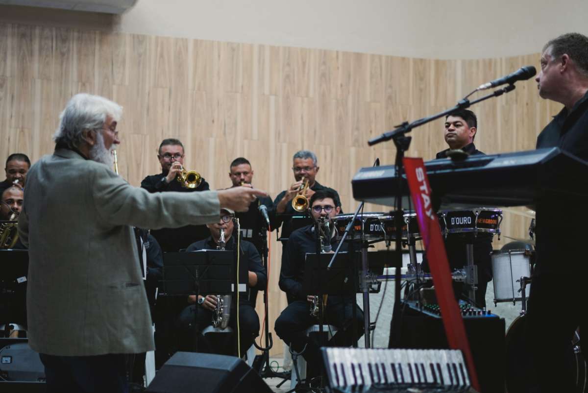 A noite começou em clima de celebração, com a apresentação da banda Maestro Poty Big Band Show, que conduziu o público por um passeio musical pelos últimos 50 anos. O repertório mesclou ritmos como MPB, forró, lambada, frevo, rock e outros estilos que marcaram diferentes gerações. Durante os cerca de 45 minutos de show, o auditório se encheu de energia, o público se levantou das cadeiras, dançou e cantou junto.