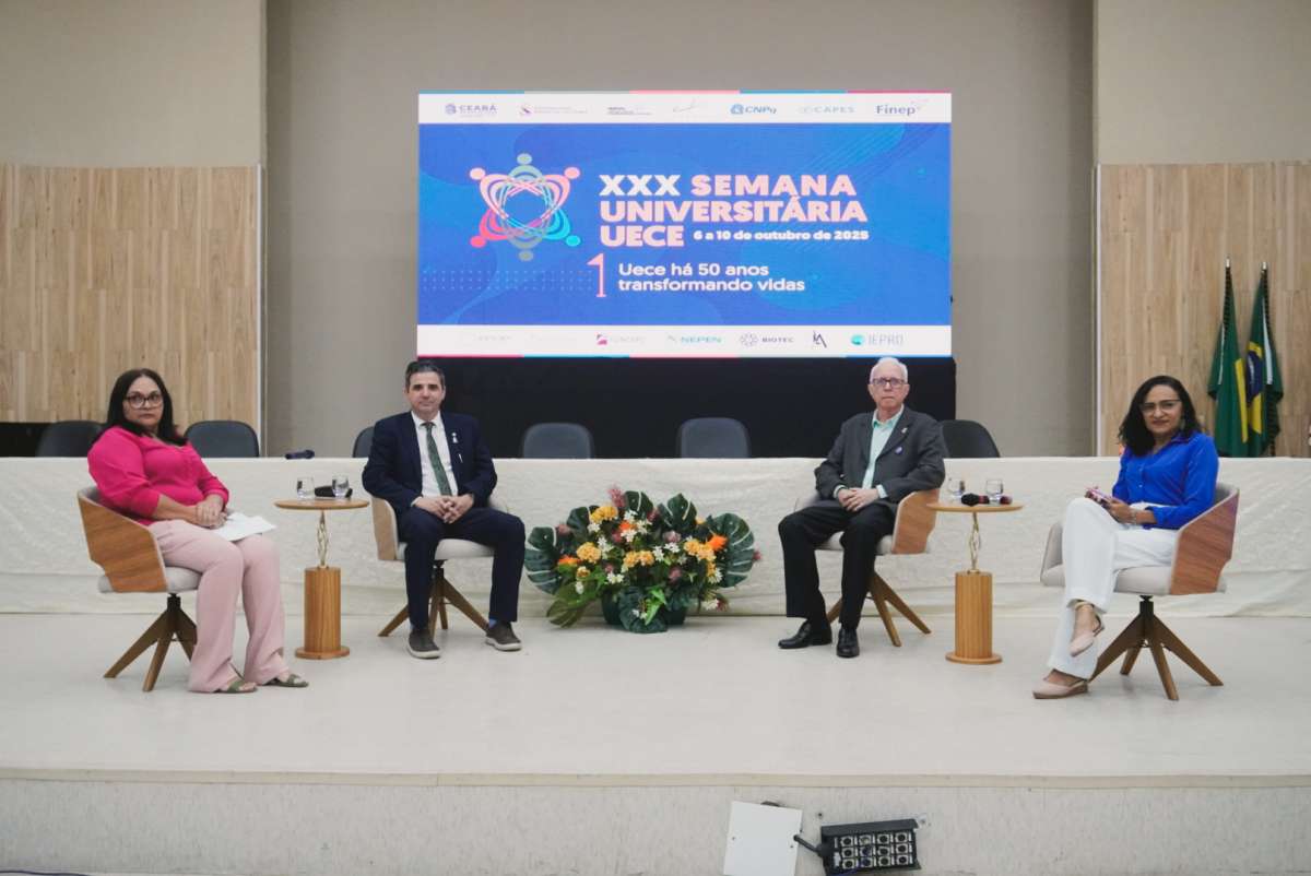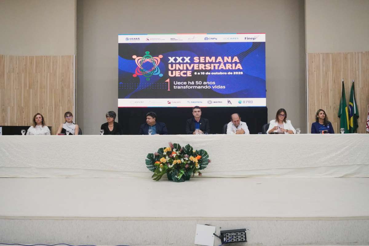 Durante a abertura, a coordenadora geral da Semana Universitária e pró-reitora de Pós-Graduação e Pesquisa, professora Ana Paula Rodrigues, comemorou o início de uma edição histórica, que une os 30 anos do evento aos 50 anos da Uece. “Estamos muito felizes de iniciar esta 30ª Semana Universitária. São 30 anos de história que se misturam com os 50 anos da Uece”, afirmou. A professora destacou o caráter coletivo da organização e agradeceu o envolvimento de pró-reitores, diretores de unidades do interior, equipes técnicas e patrocinadores.