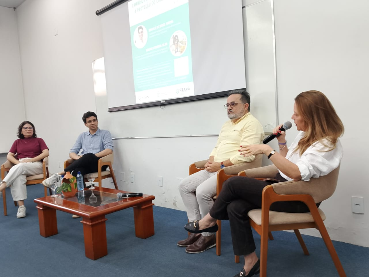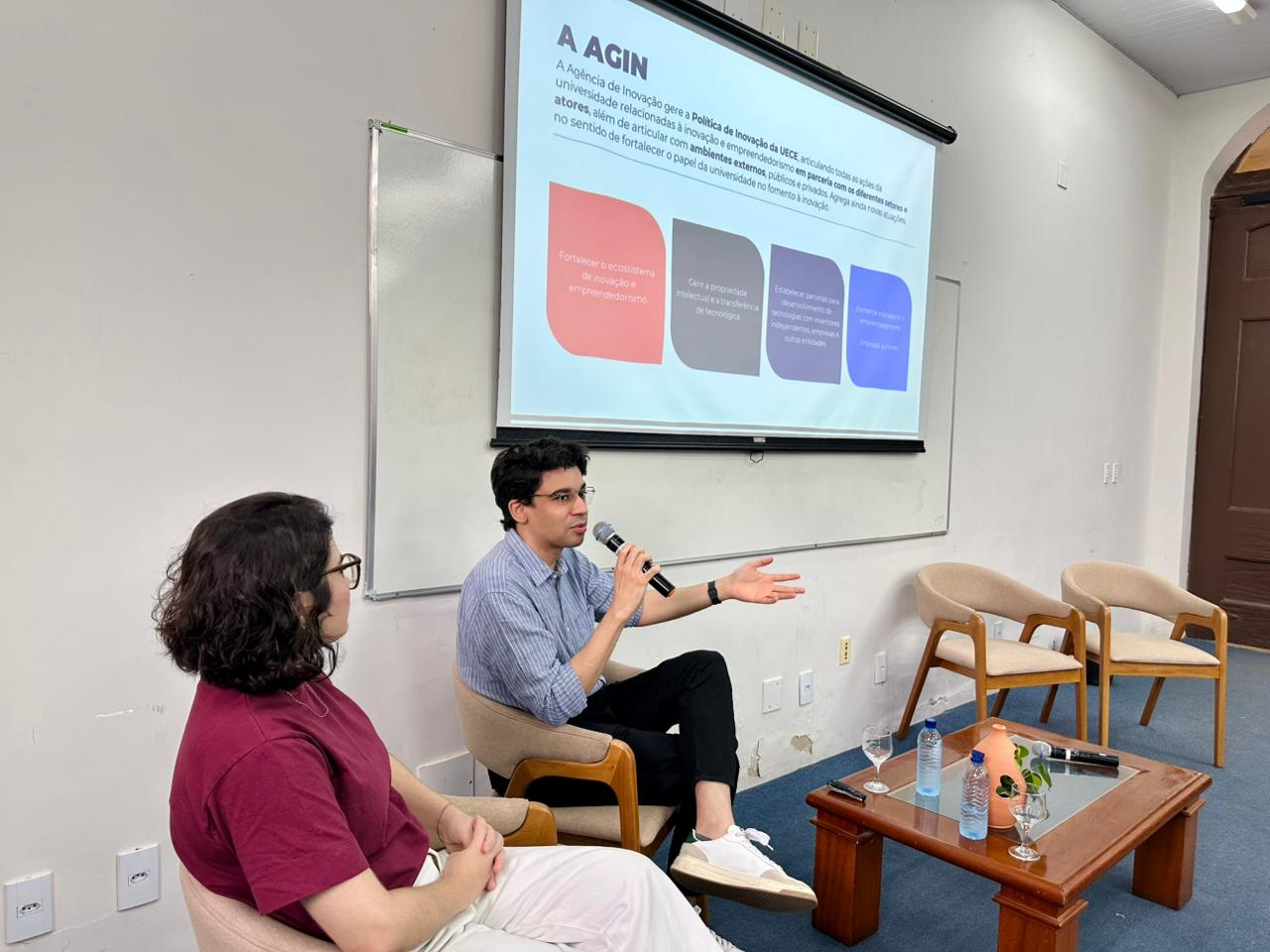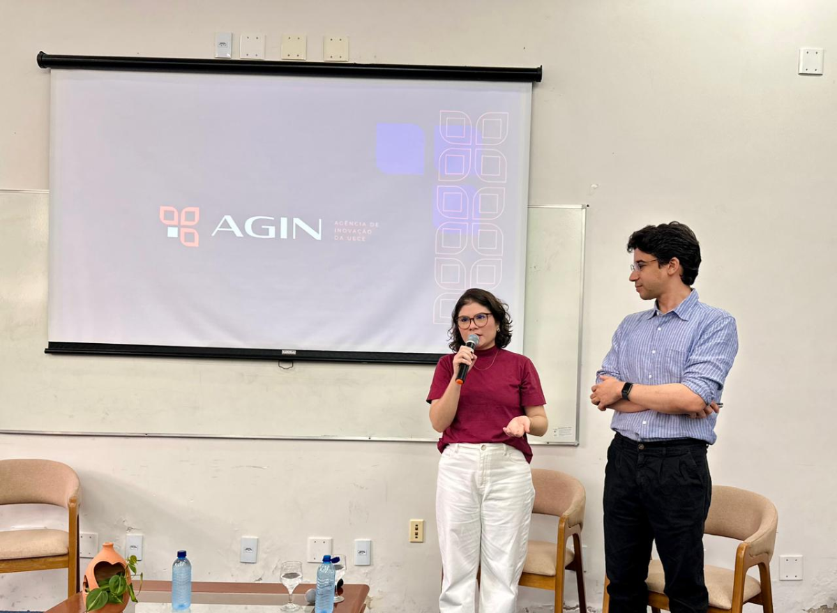 Durante o encontro, foi ministrada a palestra “Proteger, Conectar, Inovar: a Atuação da Agin/Uece na Promoção da Inovação e da Propriedade Intelectual”, conduzida pelo coordenador da Agência, Ismayle de Sousa Santos, e pela assistente técnica em Propriedade Intelectual, Beatriz Silva.