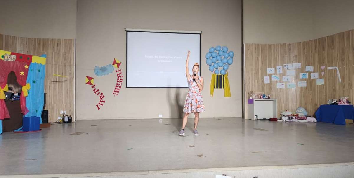 “Neste ano, estamos trabalhando o universo da infância, esse resgate da infância. Então, vocês veem que, na hora que estão entrando no auditório, tem essa abordagem para as pessoas já entrarem nesse universo, para depois assistirem ao festival já no clima da infância”, ressalta a coordenadora do evento, professora Kristiane Franchi.