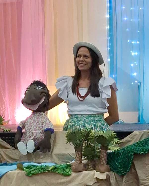 Houve também apresentação musical da aluna Sabrina Lima e apresentação artística de Teatro de Bonecos ”Kauana e a Onça Parda”, apresentado por Kênia Diógenes, cordelista de Tabuleiro do Norte, autora do livro A mulher sem rosto.