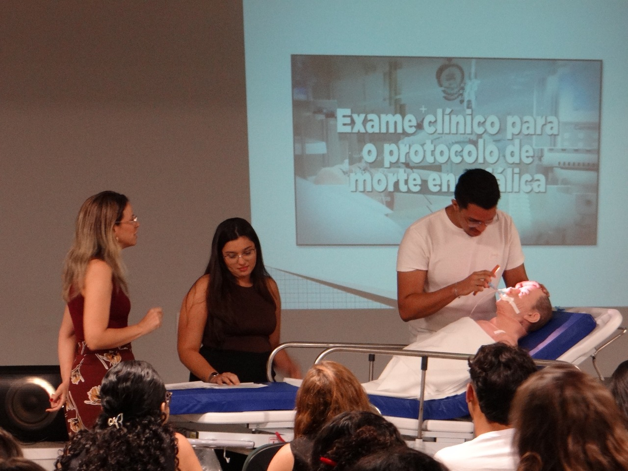 Durante a programação, foram abordados temas essenciais como a comunicação com famílias doadoras, o diagnóstico de morte encefálica e a integração multiprofissional no processo de doação e transplante. A enfermeira Aline Alves também conduziu uma simulação prática com o uso de um boneco especial, na qual alguns participantes tiveram a oportunidade de executar etapas do protocolo de diagnóstico de morte encefálica, tornando o aprendizado mais dinâmico e aproximando os acadêmicos da realidade assistencial.