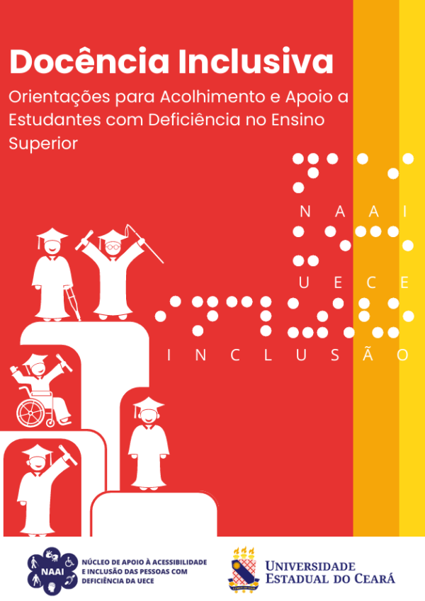 O Núcleo de Apoio à Acessibilidade e Inclusão (NAAI) da Universidade Estadual do Ceará (Uece), disponibiliza a cartilha intitulada “Docência Inclusiva: orientações para acolhimento e apoio a estudantes com deficiência no Ensino Superior”, elaborada com o intuito de oferecer subsídios práticos aos docentes no processo de inclusão e promoção da acessibilidade pedagógica no âmbito da Uece.