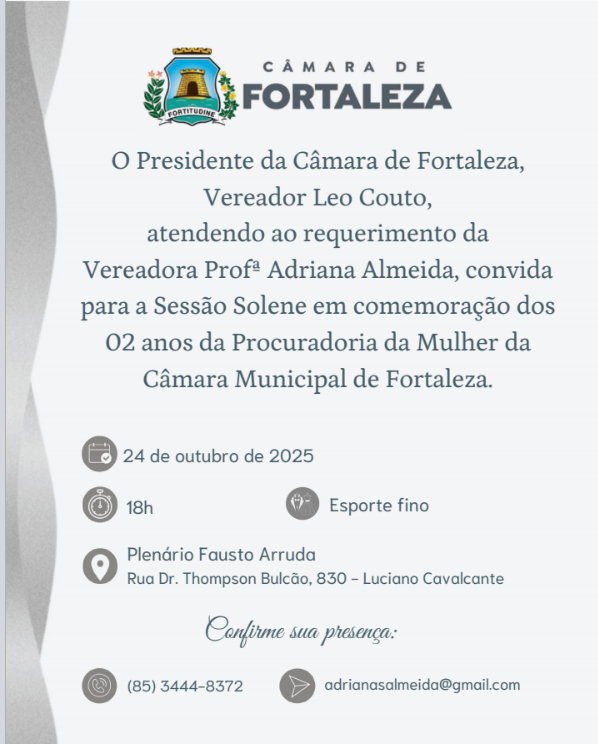 A homenagem foi proposta pela vereadora Professora Adriana Almeida e reconhece a relevante contribuição do NAH nas ações voltadas à promoção da igualdade de gênero e ao enfrentamento à violência contra a mulher. A sessão é aberta ao público.