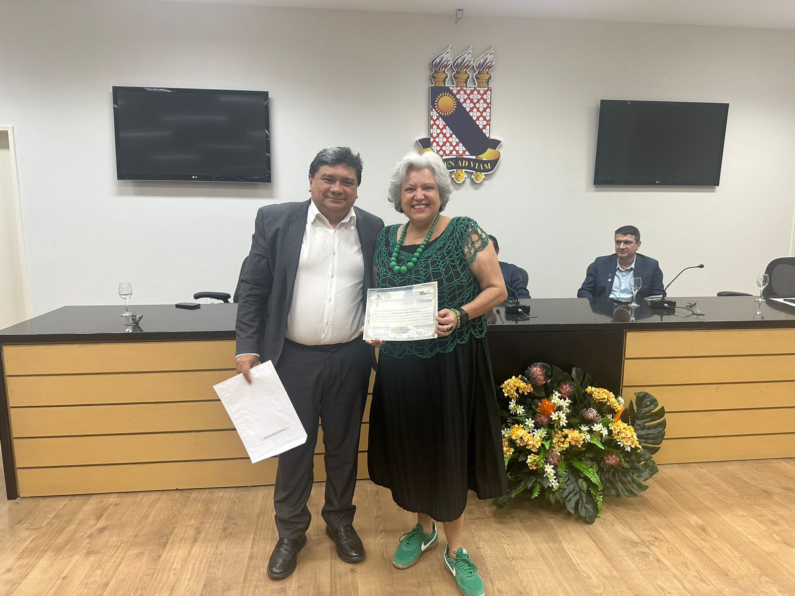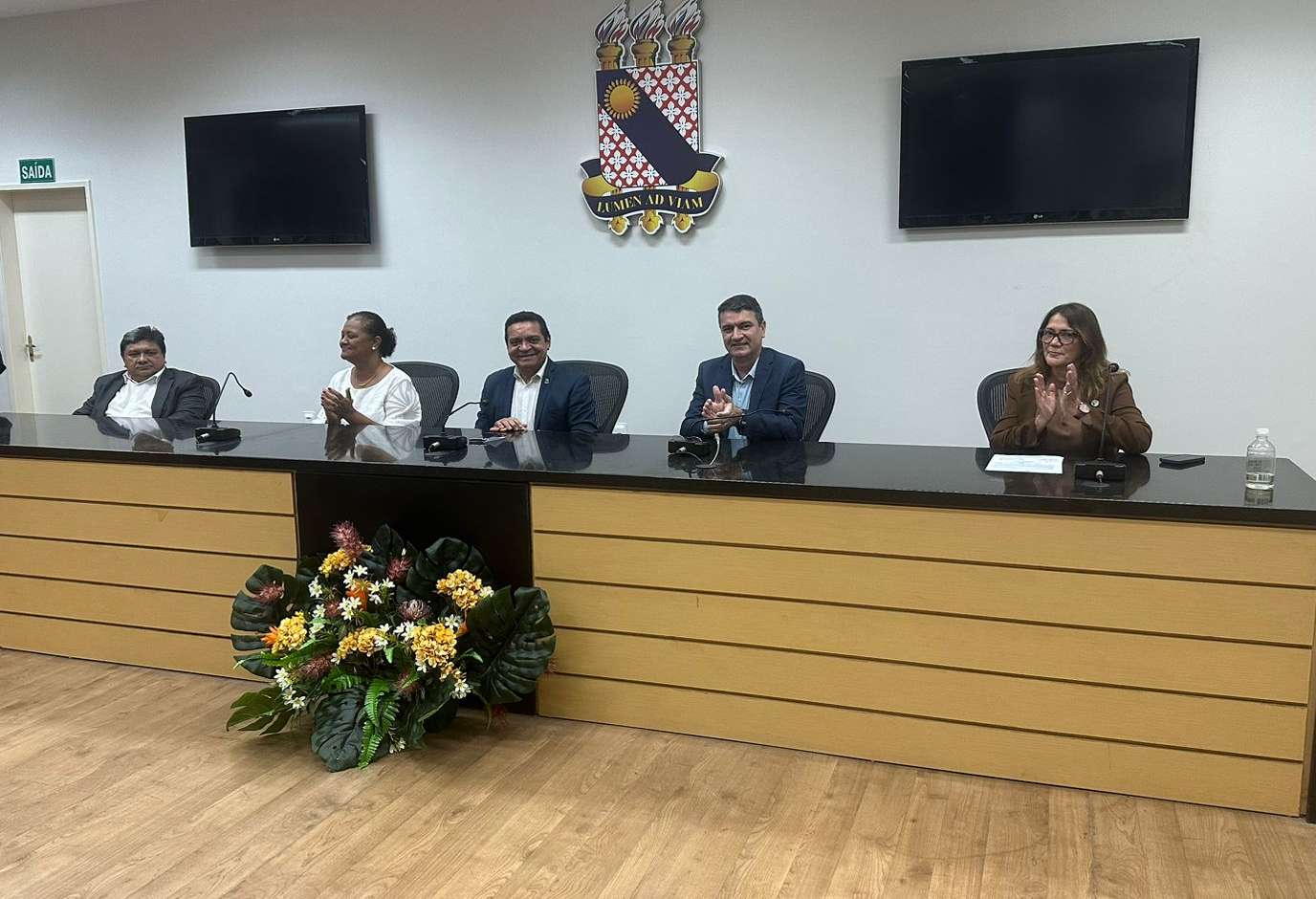 A solenidade foi presidida pelo reitor da Uece, professor Hidelbrando Soares, acompanhado pelo vice-reitor, professor Dárcio Teixeira; a secretária da Ciência, Tecnologia e Educação Superior do Ceará (Secitece), Sandra Monteiro; o presidente da Fundação Cearense de Apoio ao Desenvolvimento Científico e Tecnológico (Funcap), professor Raimundo Nogueira Filho; e a pró-reitora de Pós-Graduação e Pesquisa da Uece, professora Ana Paula Ribeiro Rodrigues, coordenadora do evento.