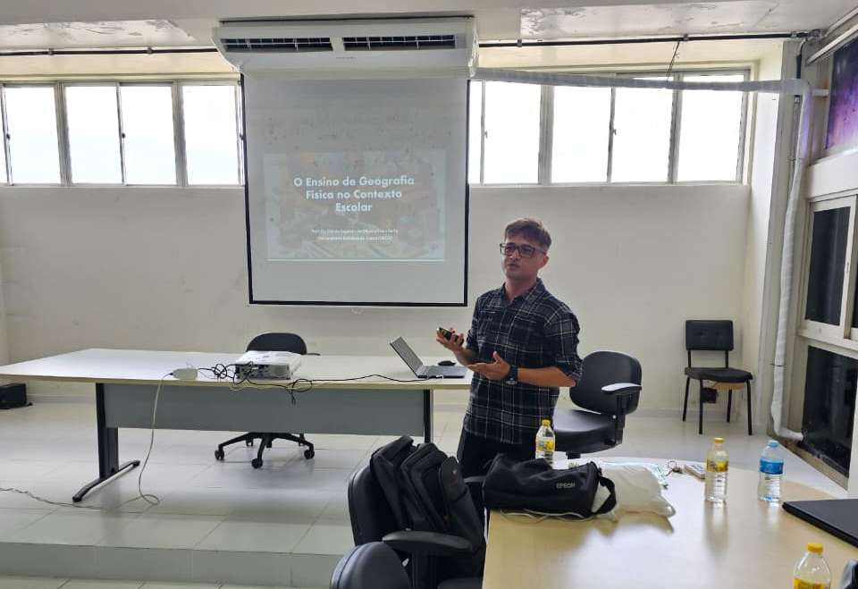 Encerrando o evento, a palestra “O Ensino de Geografia Física: Perspectivas e Abordagens Metodológicas no Contexto Escolar” promoveu uma reflexão aprofundada sobre estratégias de ensino, uso de recursos didáticos, organização curricular e a necessidade de aproximar os conteúdos físico-naturais das realidades vividas pelos alunos.