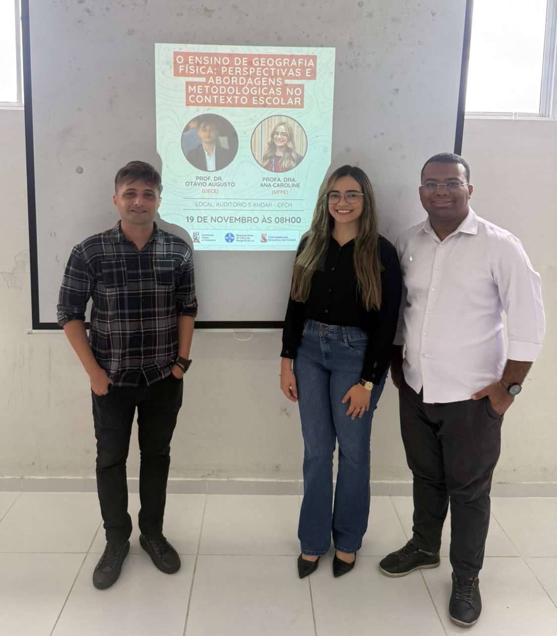 O evento também contou com a participação da consultora e pesquisadora Carol Souza, ex-professora da UFPE e da UERN, igualmente egressa do PropGeo/UECE. De acordo com os organizadores, a presença dos três reforçou o destaque dos ex-alunos do Programa na produção científica e na formação docente em instituições de diferentes estados.