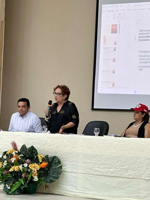 A professora Adelaide Gonçalves iniciou sua fala afirmando-se como uma “leitora voraz”, ressaltando que reconhece e admira a profundidade intelectual presente na obra de Denise Elias, construída a partir da busca constante pelo “melhor de cada pesquisador”. Destacou ainda a força da bibliografia mobilizada pela autora, que dialoga com referências fundamentais como Josué de Castro, Manoel Corrêa de Andrade, autor de “Terra e o Homem do Nordeste”, e, sobretudo, com o “grande geógrafo revolucionário” Milton Santos. Ao avaliar o livro, a professora foi categórica: trata-se de uma obra “absolutamente necessária”, “não um livro qualquer”, mas sim um “livro para explicação de consciências”, expressão que usou para enfatizar que o texto reafirma o compromisso de Denise Elias com a luta social. Concluiu classificando A fábula do agronegócio no Brasil: as novas, as velhas faces da dependência como um livro “urgente, necessário, uma obra de síntese e resultado de boa pesquisa, capaz de revelar, com rigor e coragem, a fábula que sustenta o agronegócio no país”, finaliza.