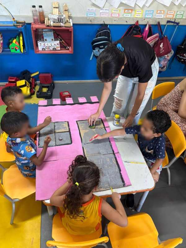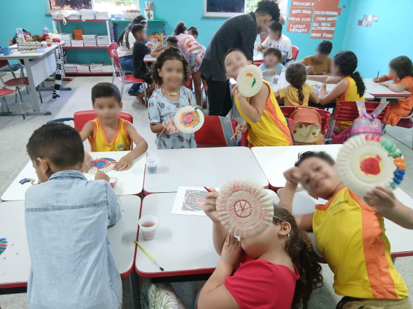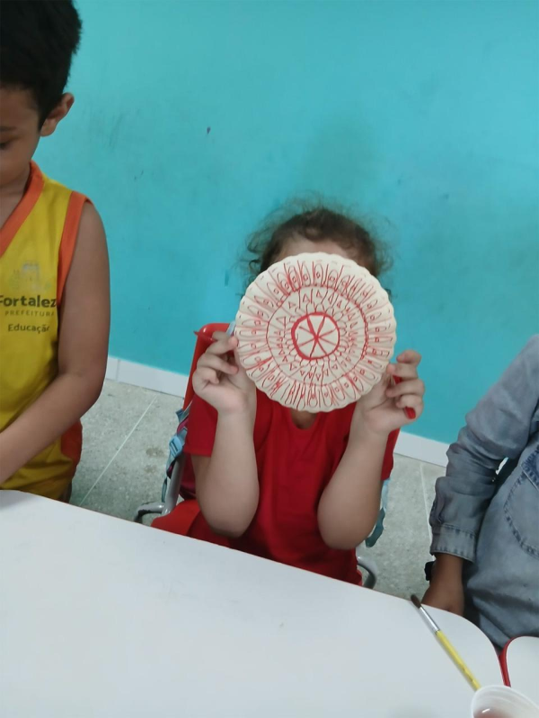 Como parte da culminância do projeto de intervenção “Protagonismo Infantil na Alfabetização: descobrindo o eu, reconhecendo o outro e tecendo o nós”, o mês de junho foi dedicado à finalização das produções que integrariam a exposição final. Entre as atividades desenvolvidas, destacou-se a oficina de mandalas, planejada para possibilitar às crianças a exploração de diferentes artefatos culturais e artísticos. Durante a atividade, foram apresentados os significados das mandalas em diversas culturas e, em seguida, as crianças confeccionaram suas próprias mandalas.