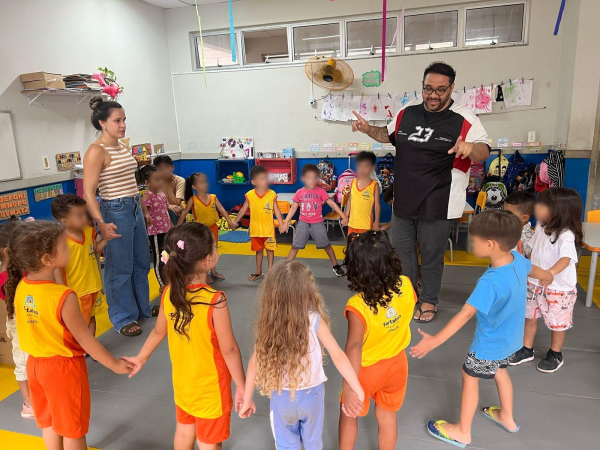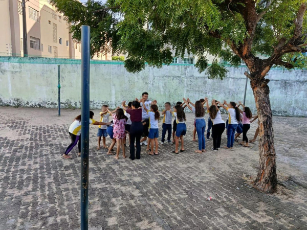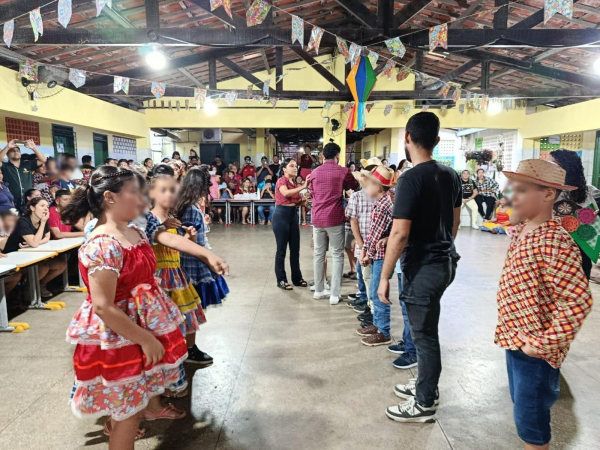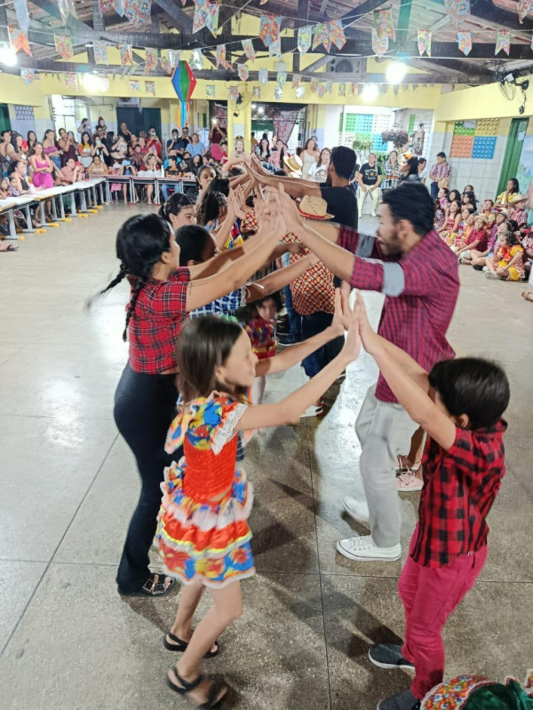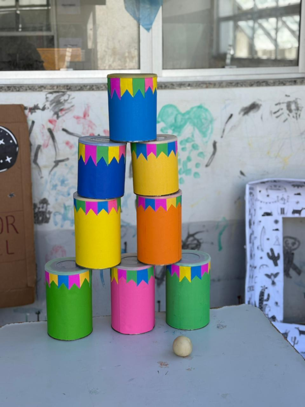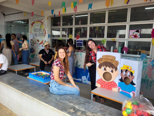 Além disso, foram organizadas quatro brincadeiras típicas: pescaria, boca do palhaço, argolas e derruba-latas, com o objetivo de promover a socialização, o trabalho coletivo e o desenvolvimento motor por meio da ludicidade.