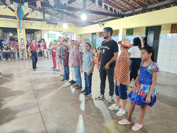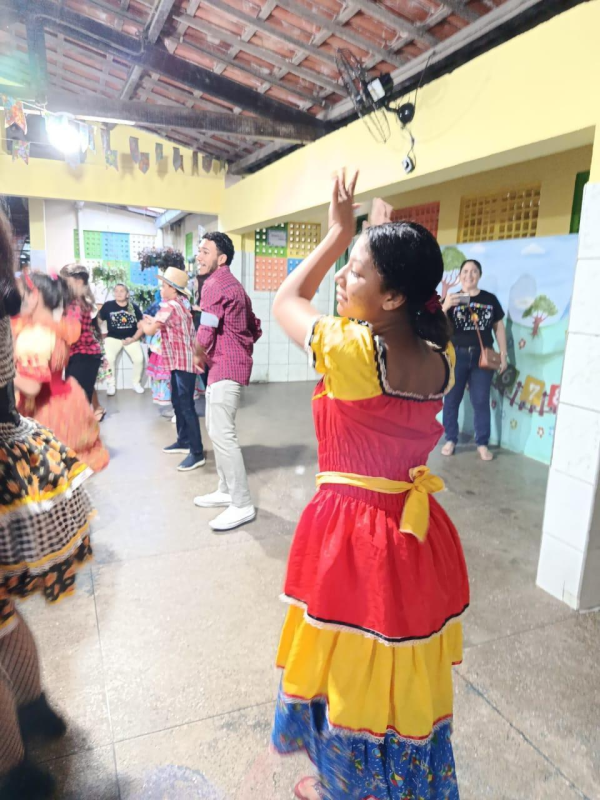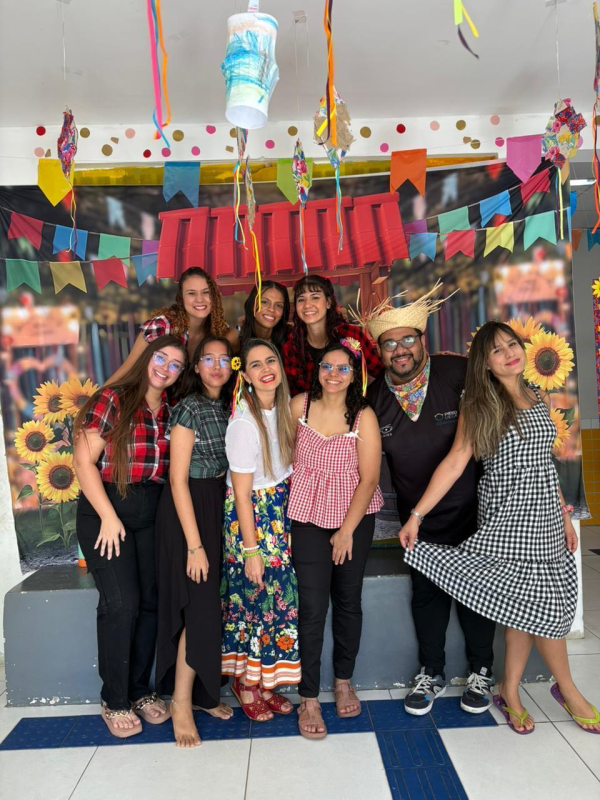 Durante o mês de junho, as atividades foram voltadas para a valorização da cultura nordestina, culminando na realização da Festa Junina da escola. As crianças, juntamente com os bolsistas, participaram da confecção da “Vila do PIBID”, um cenário temático simbolizando a presença dos bolsistas no ambiente escolar, reforçando a parceria entre universidade e escola.