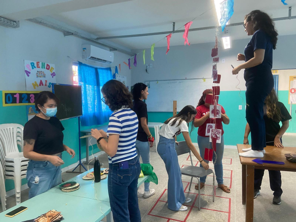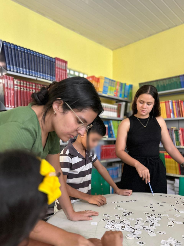 Para apoiar o processo de alfabetização, os bolsistas utilizam atividades lúdicas e alfabeto móvel, tornando o aprendizado mais interativo. Essas práticas realizadas na biblioteca buscam promover um ambiente que considere as dificuldades e incentive a participação ativa das crianças na leitura e escrita.