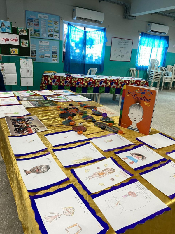 No mês de março, realizamos visitas a espaços de multiletramentos fora do ambiente escolar, como a Biblioteca Pública Estadual do Ceará (Bece) e a Pinacoteca do Ceará. Ao final dessas experiências, promovemos uma roda de conversa para refletir sobre as linguagens que permeiam nossas (re)existências e identificar as expressões multiletradas presentes nesses ambientes, com foco no processo de alfabetização cultural.