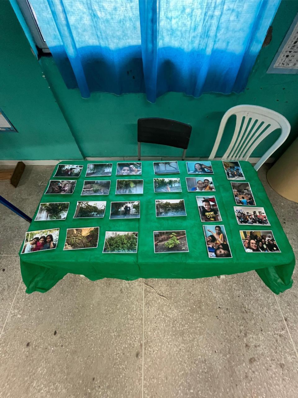 A exposição foi organizada em seções que refletiram as vivências das crianças: “Pelas minhas lentes eu vejo…”: com fotografias feitas pelas próprias crianças, registrando como viam o mundo ao seu redor. “Cores que contam histórias”: apresentando pinturas feitas com aquarela, tintas naturais e representações do céu, inspiradas na leitura do livro “Bernardo e o Céu Estrelado”, de Vinicius Ferraz. “Sinto o que sinto”: reunindo desenhos que expressavam suas percepções, emoções e vivências ao longo do semestre. “No ritmo do batuque”: com instrumentos musicais confeccionados pelas crianças. “Cirandando a vida”: momento interativo em que todos os presentes participaram de uma grande ciranda. “Que país é esse?”:  com registros fotográficos da visita à Caixa Cultural, realizada em abril. O nome da seção surgiu a partir da fala espontânea de algumas crianças que, ao retornarem da visita, perguntaram: “Que país é esse?”, revelando o impacto e o contraste entre o que vivenciaram e a realidade que conhecem.