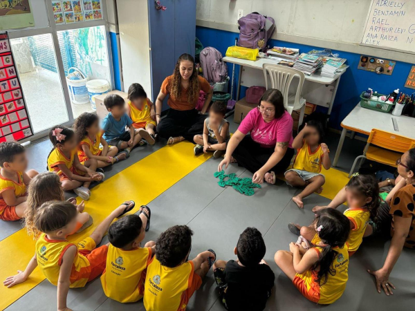 No mês de maio celebramos o ‘Dia da Família’ no CEI, com a participação das famílias das crianças. Os bolsistas realizaram a contação da história “DRUFFS”, de Eva Furnari, que aborda a família sob o olhar das crianças. Em seguida, as famílias desenharam suas representações familiares em retalhos de tecido, que foram unidos para formar uma colcha da união, afeto e diversidade.