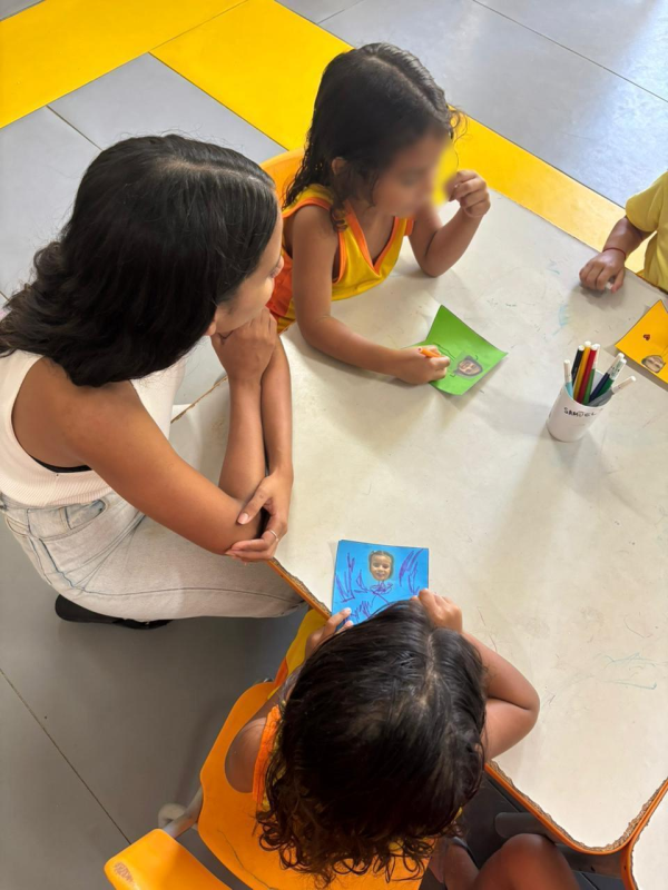 O Piquenique Literário aconteceu em 10 de dezembro, na EMEIEF Paulo Sarasate, utilizando literaturas afrorreferenciadas. A atividade proporcionou um momento de leitura e troca de experiências. Após uma contação de história, realizamos uma atividade de autorretrato com espelhos, onde cada criança se recriou no desenho, expressando como se percebe.