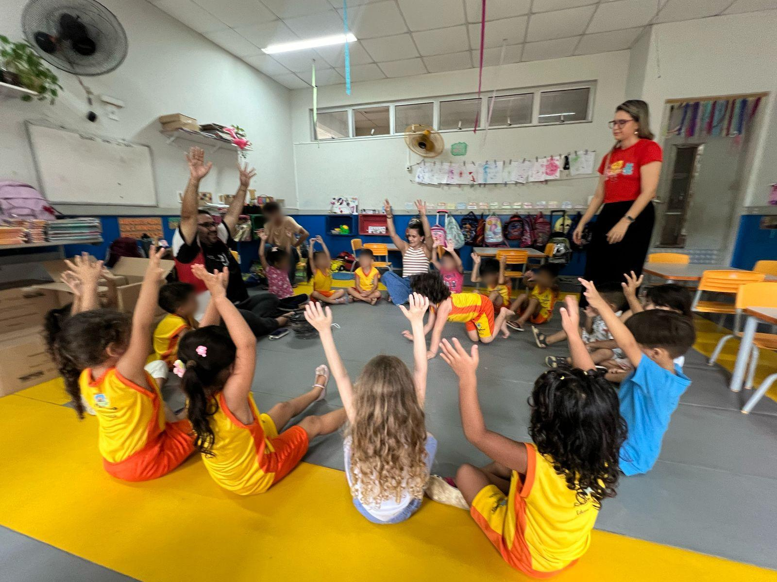 Além disso, foram organizadas quatro brincadeiras típicas: pescaria, boca do palhaço, argolas e derruba-latas, com o objetivo de promover a socialização, o trabalho coletivo e o desenvolvimento motor por meio da ludicidade.