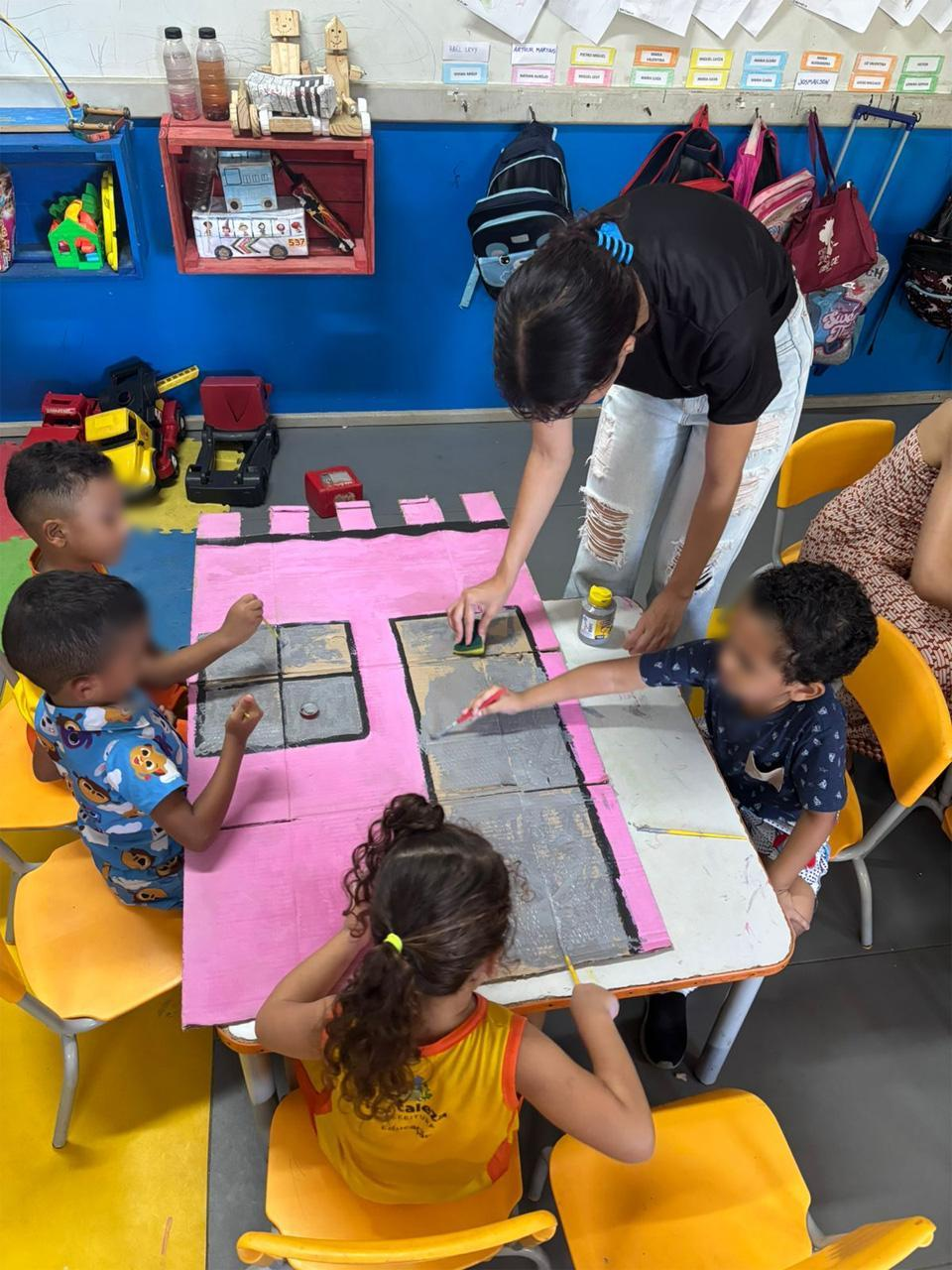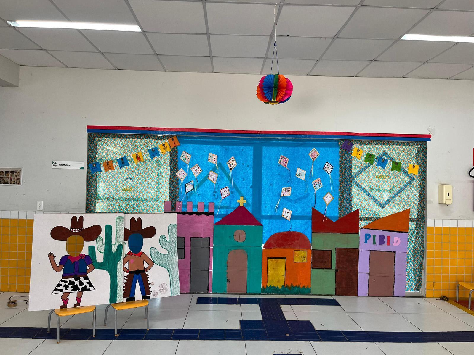 Durante o mês de junho, as atividades foram voltadas para a valorização da cultura nordestina, culminando na realização da Festa Junina da escola. As crianças, juntamente com os bolsistas, participaram da confecção da “Vila do PIBID”, um cenário temático simbolizando a presença dos bolsistas no ambiente escolar, reforçando a parceria entre universidade e escola.