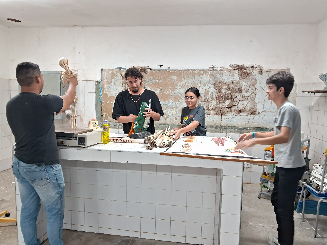 Momentos na Escola Almeida Monte. Conhecendo o Laboratório de Ciências, interação com alunos da escola. Momento de planejamento para uso de ferramentas digitais.