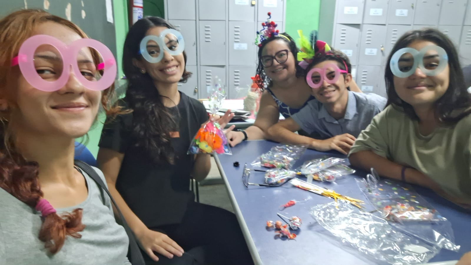 Interação do grupo nas atividades da escola. Participando da organização e elaboração de material.
