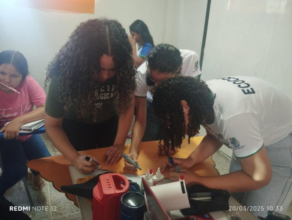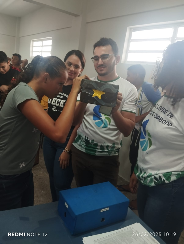 05/05/2025 – No dia em questão, no período da tarde, os bolsistas da escola Gonzaga Mota realizaram o planejamento e a customização de uma caixa que seria usada no Jogo dos Sentidos durante a Feira de Matemática, na semana da OCACE – Olimpíada, Científica, Artística, Cultural e Esportiva.