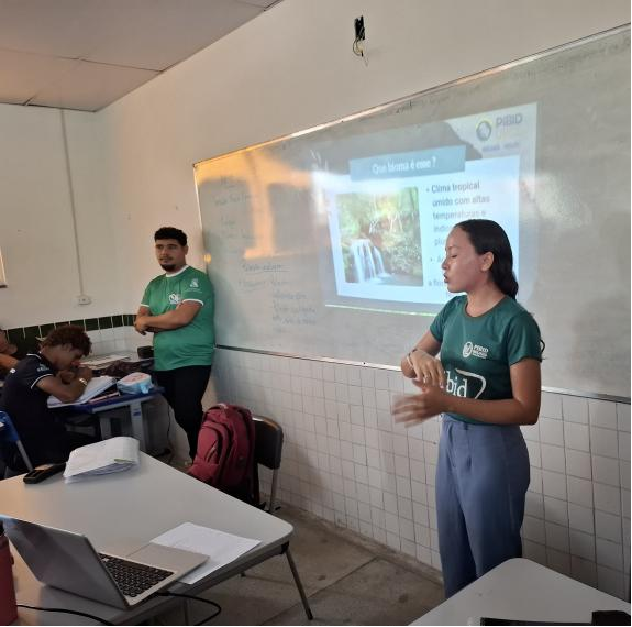 12/06/2025: (José Bonifácio) – A regência do bolsista Miguel Castro, no 7º ano A, teve o tema: Biomas Brasileiros. Ele fez a explanação do conteúdo utilizando o livro didático e anotações no quadro; os biomas estudados em aula foram a Caatinga, o Pantanal, o Pampa e o Bioma Marinho-Costeiro.