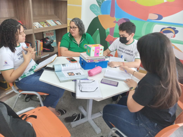 04/12/2024 – Encontro dos Bolsistas com a supervisora Profa. Renatinha na escola de Ensino Médio Governador Luiz Gonzaga da Fonseca Mota para estudo do Projeto Político Pedagógico para ser apresentado na reunião do núcleo com a professora Jamili.