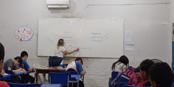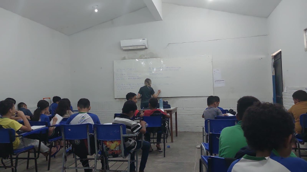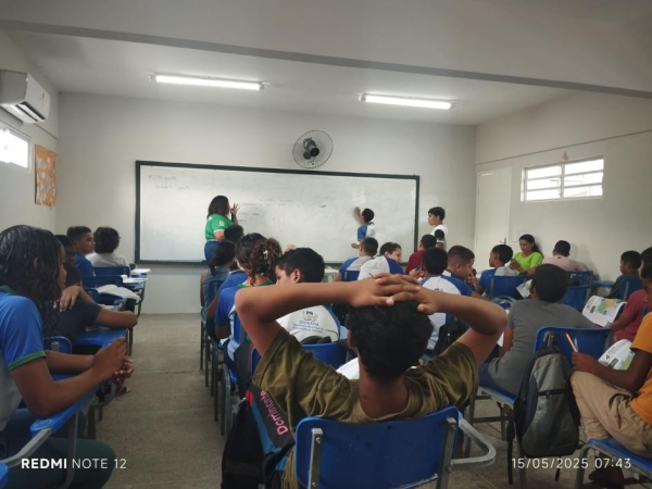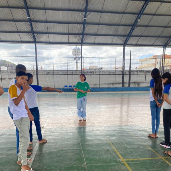 04/06/2025 – (Padre Vicente) Regência da BID Evilly, Dividiu os alunos em duas equipes, que deveriam competir entre si para ver quem conseguia acertar mais questões. Essa dinâmica colocava perguntas repetidas para que eles conseguissem utilizar do conhecimento adquirido ao errar uma questão para acertar outras.