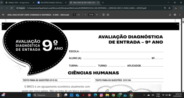 Imagem 19: 10/03/25 – Prova diagnóstica do Avalia