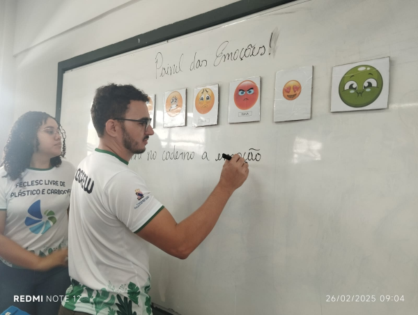 26/02/2025: (José Bonifácio) – No primeiro momento da observação de aula, nas turmas do 8° ano A e B, a professora Juliana se apresentou à turma, seguida por nós, bolsistas do PIBID, que também nos apresentamos e explicamos brevemente sobre o programa. Em seguida, realizamos uma dinâmica sobre as emoções, proporcionando um momento bastante interativo. No segundo momento, de caráter teórico, a professora abordou as fases da Lua e os eclipses solar e lunar, levamos uma caixa ilustrativa com as fases da Lua, permitindo que os alunos observassem e identificassem cada uma delas.