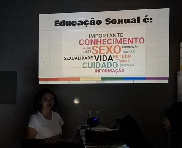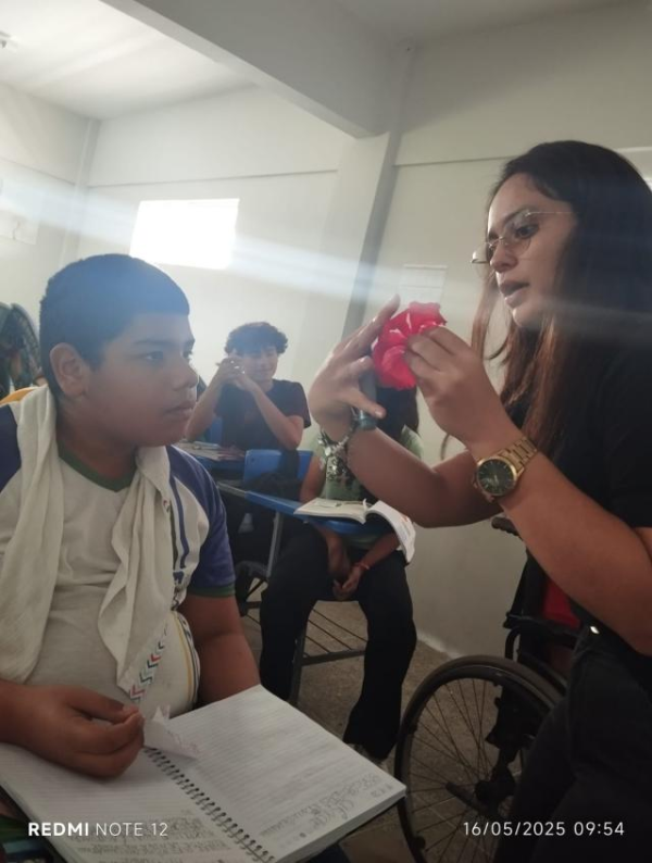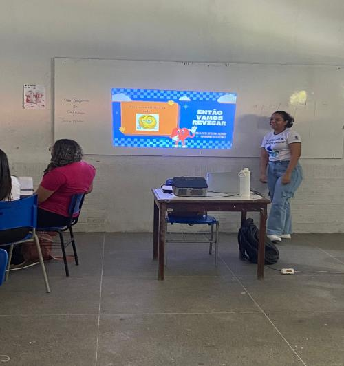 14/05/2025 – Minicurso de “Educação Sexual nas escolas: lutando para o fim da discriminação sexual e de gênero na escola.” realizado pela bolsista Jamile. na escola Gonzaga Mota.