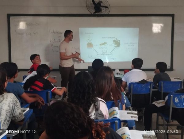 14/05/2025: (José Bonifácio) – Regência Alessandro 7° C e D, com tema da aula sendo “Biomas brasileiros e biodiversidade”. As atividades foram divididas em dois momentos: um teórico e outro prático. Na parte teórica, foram apresentados os principais conceitos relacionados ao conteúdo, e na a etapa prática, foi realizado uma dinâmica sobre cadeias e teias alimentares.