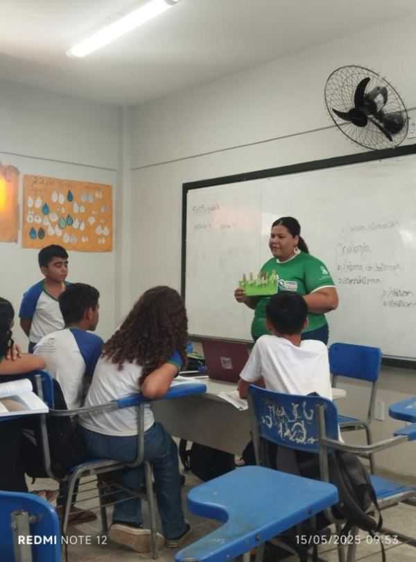 15/05/2025: (José Bonifácio) – Regência da bolsista Talita e a observação da bolsista Rosymelry; Regência nas turmas do 7º ano A e B, abordando os biomas brasileiros e conceitos ecológicos. A aula transcorreu de forma tranquila e participativa. Foi apresentado pela bolsista um recurso didático, confeccionado com materiais recicláveis e desenhos autorais, o que ajudou os alunos a visualizarem os conteúdos de maneira mais concreta e acessível.