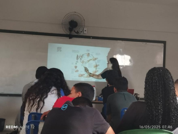 09/05/2025: (José Bonifácio) – A regência do bolsista Arthur foi abordado em ambas as turmas o conteúdo de Briófitas, pteridófitas, gimnospermas e angiospermas abordando as características de cada grupo e os ciclos reprodutivos.