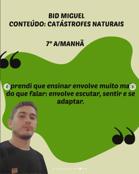 08/05/2025: (José Bonifácio) – Regência Miguel Castro; bolsista Miguel Castro ministrou uma regência nas turmas do 7° ano A e B, abordando o conteúdo “Catástrofes Naturais: Terremotos, Tsunamis e Vulcões”.