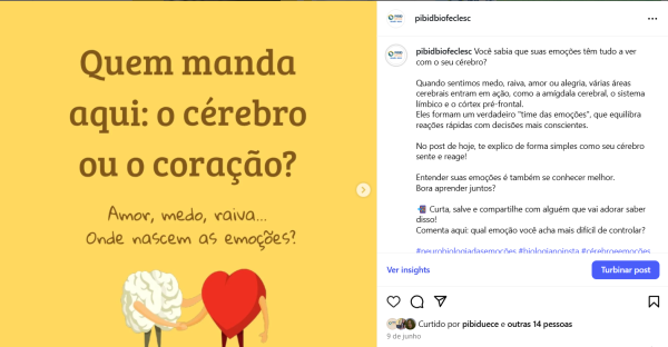 01/08/2025: publicação no Instagram oficial do PIBID Biologia FECLESC um podcast relacionado a temas de Biologia para diferentes pessoas dentro da escola Gonzaga Mota. O post consiste em duas perguntas que repercutiram no âmbito escolar entre os alunos. Essas eram: Como a cobra respira? e, Mulheres têm mitocôndria? Essas perguntas foram feitas tanto para professores como para alunos.