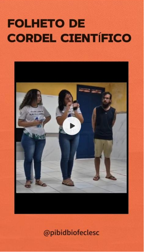 12/03/2025: Publicação no instagram (José Bonifácio) – Foi publicado um reels sobre a apresentação de um cordel científico, elaborado pelos bolsistas: Arthur, Cintia, Leticia e Miguel, no qual o tema foi “O ciclo da água”. Essa foi a segunda equipe da escola José Bonifácio a apresentar o cordel.