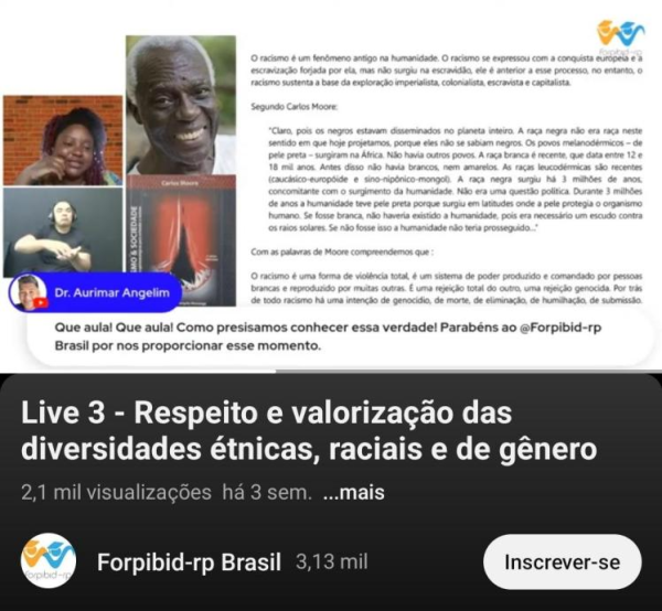 A live foi ministrada pela professora Marta Aparecida Garcia Gonçalves, coordenadora institucional do PIBID na Universidade Federal do Rio Grande do Norte (UFRN) e representante da região Nordeste no FORPIBID. Conduziu a apresentação destacando seu comprometimento com a inclusão social e educacional.