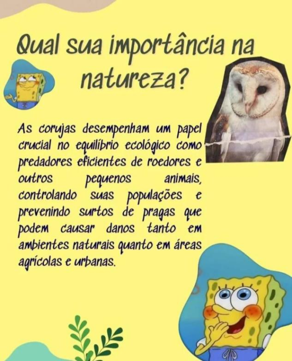 21/07/2025 – (Padre Vicente) Publicação sobre as corujas e algumas questões sobre com o objetivo principal de divulgar conhecimento científico de forma acessível e atrativa, focando em curiosidades sobre as corujas dentro do contexto da Biologia.