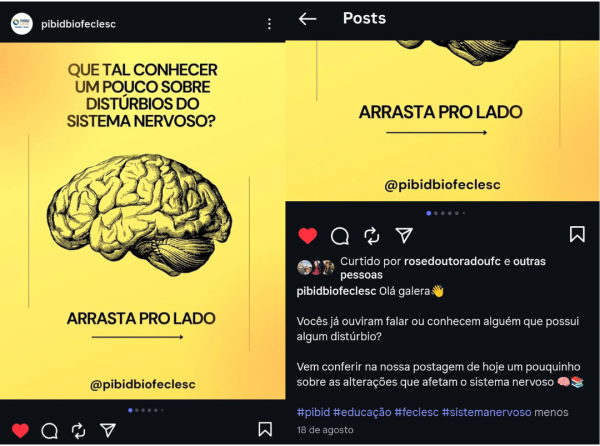 18/08/2025: (Padre Vicente) – Postagem do Instagram sobre Distúrbios do Sistema Nervoso com o objetivo de informar e trazer alguns exemplos de patologias que podem afetar o sistema nervoso além de trazer algumas dicas de hábitos preventivos.